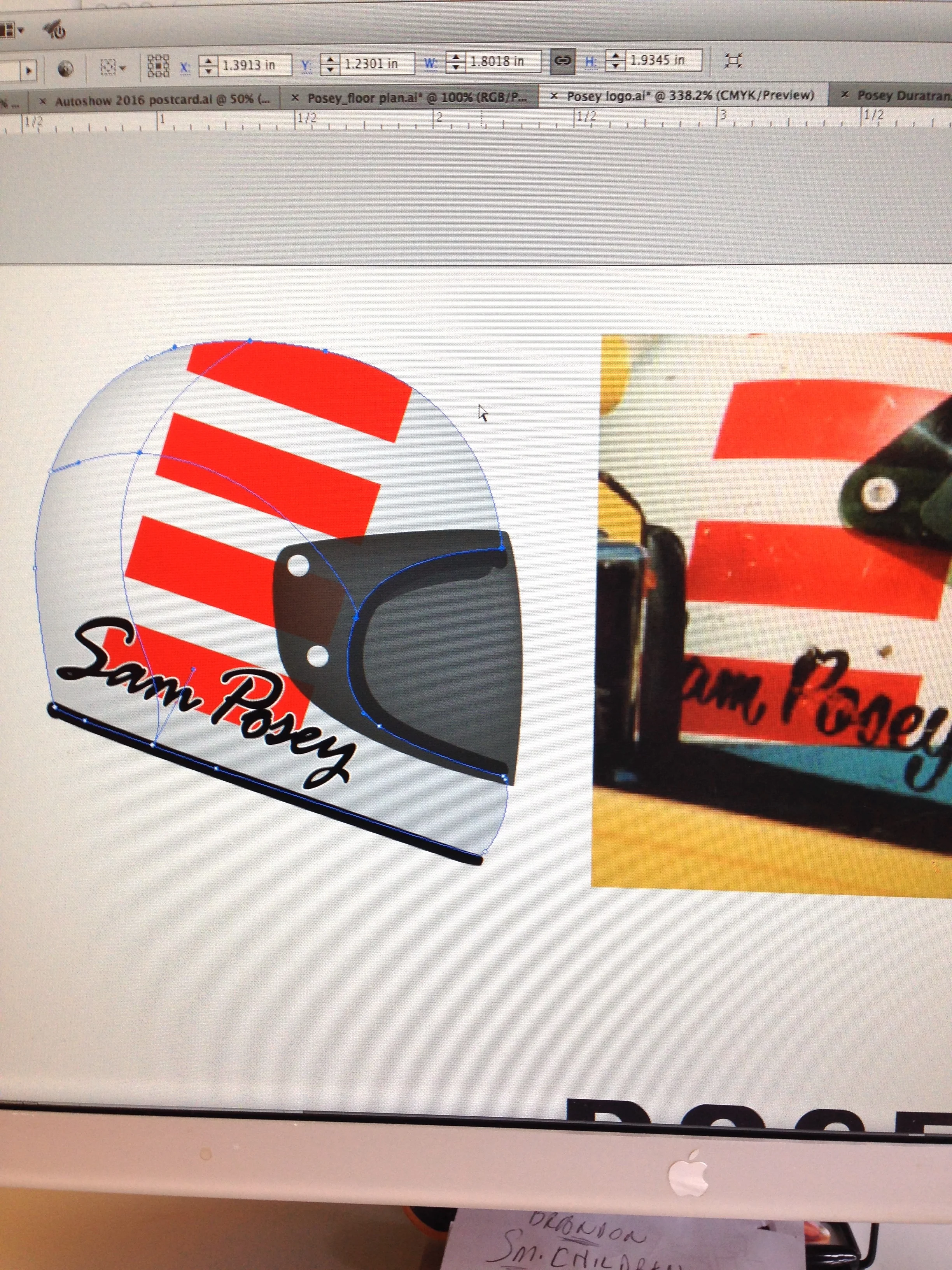 Posey Exhibition Logo Sam Posey being the artist he is, designed his own helmet drawing inspiration from the American Flag.