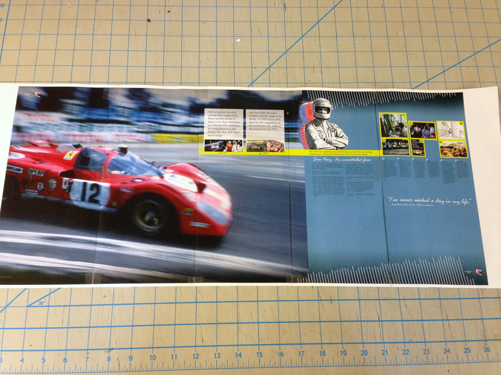 This panel is roughly 20' wide, 9' tall and is the introduction to the Posey Exhibition, I'm so glad I choose this photo as talking with Sam Posey's wife Ellen, the first thing she said is that this her all time favorite picture of Sam. This is Also Sam's favorite "ride" which I actually found out after the fact.